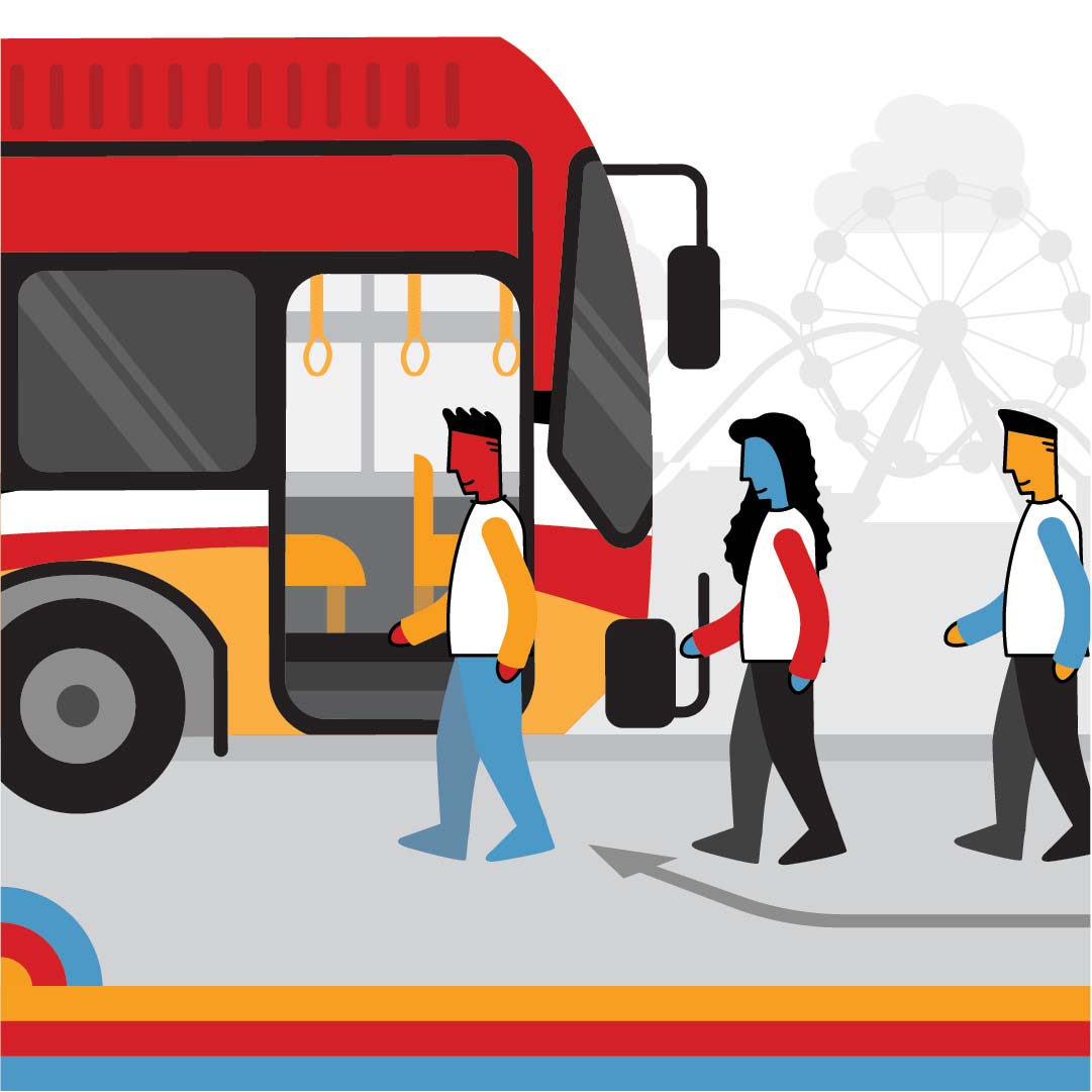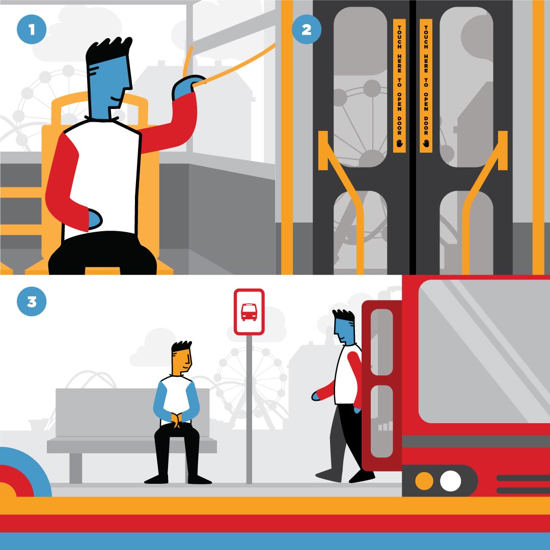 - Use the rear door exit when you reach your stop (unless the ramp is needed for wheelchairs and strollers).