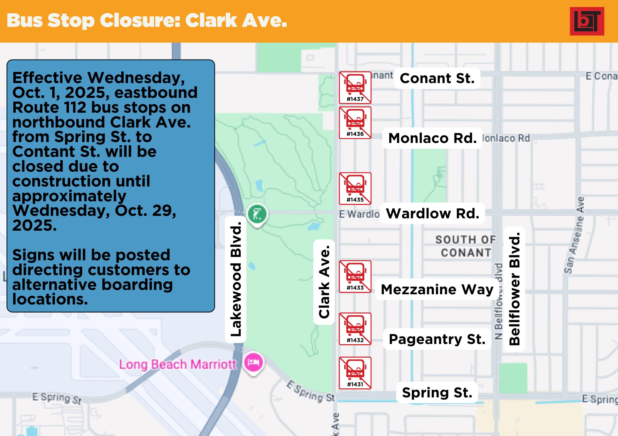 Bus Stop Closure - Bus Stop Closure – Clark Ave. 10/1/25 - ridelbt.com Long Beach Transit