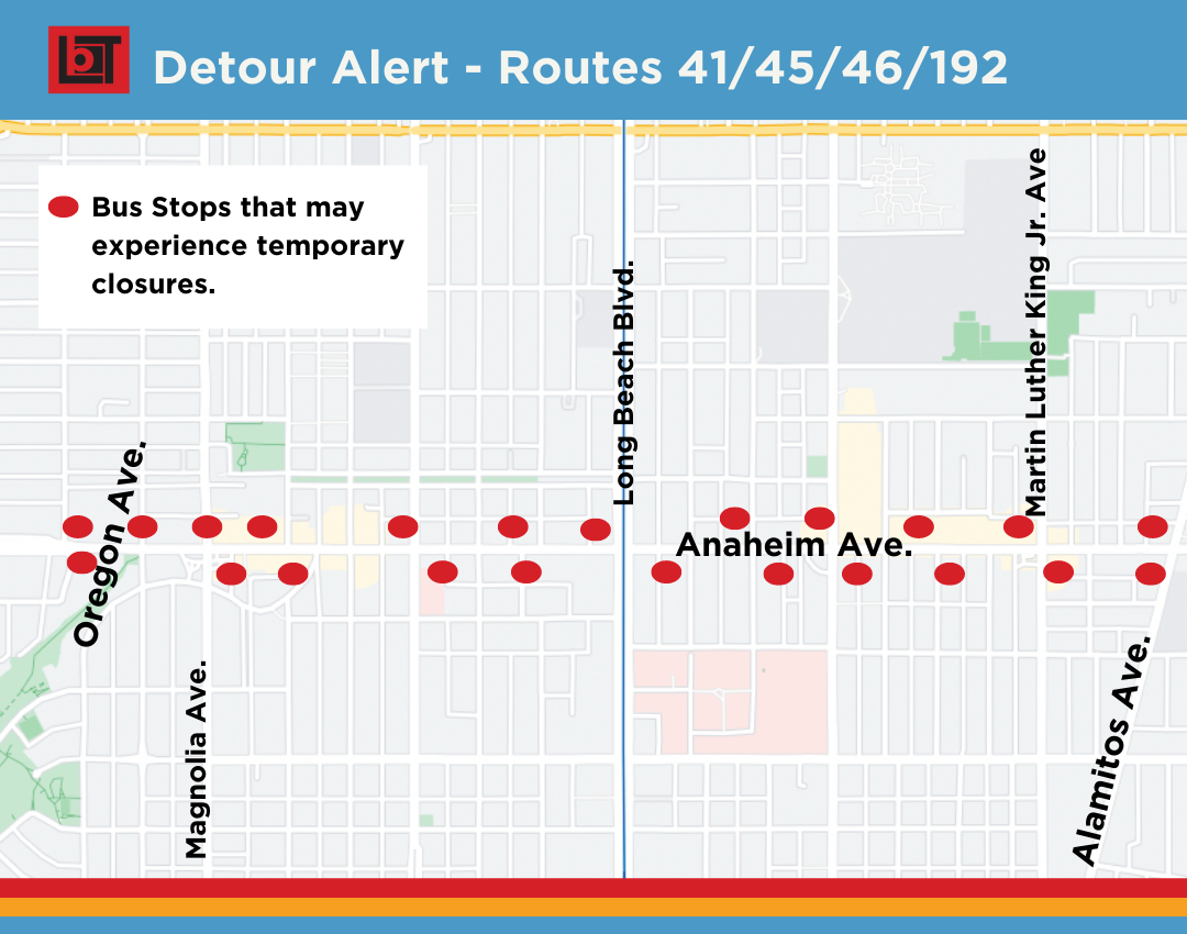 Detour Alert - Routes 41/45/46/192 - ridelbt.com Long Beach Transit
