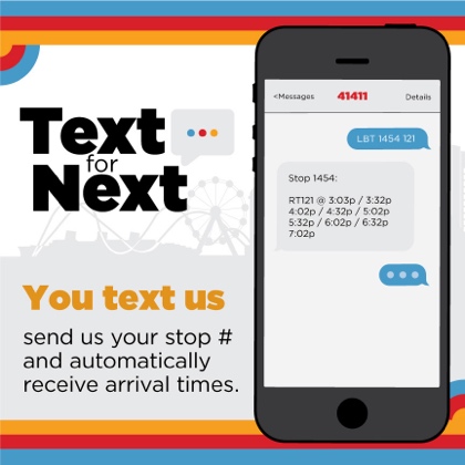 Text āLBTā plus your āstop #ā and automatically receive bus arrival times for your stop.